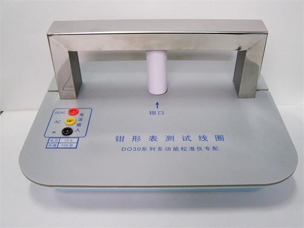 b、測(cè)指針式交流鉗形表時(shí)(大表),將恒流源輸出連接線接到測(cè)試線圈面板上的AC孔與*孔(公共端)上。